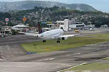 ![]() Vista aérea del Aeropuerto Internacional Toncontín antes de la ampliación de la pista de aterrizaje en 2009. | ||||
