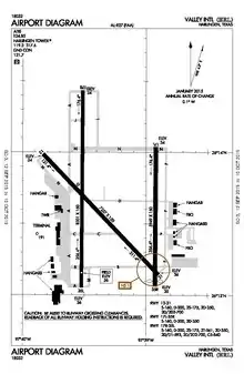El Aeropuerto Internacional Valley (en inglés, Valley International Airport o VIA) (IATA: HRL, OACI: KHRL, FAA LID: HRL) es propiedad de la ciudad de Harlingen, en el condado de Cameron, Texas, Estados Unidos.[1] Es operado por una junta del aeropuerto de nueve miembros nombrada por el alcalde. HRL tiene una ubicación central en el Valle del Río Grande y se conoce como la "Puerta de entrada a South Padre Island" con servicios de viaje y transporte a Isla del Padre Sur. Con más de 970 ha (2,400 acres), HRL es el aeropuerto más grande del VRG con espacio para una futura expansión. HRL tiene las pistas más largas del área con modernos sistemas de aproximación de aeronaves que minimizan las posibilidades de retrasos durante mal tiempo.