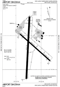 - Información del Aeropuerto Regional Tweed-New Haven en AirNav (en inglés)