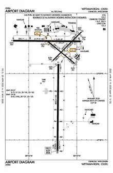 El Aeropuerto Regional de Wittman se encuentra en un terreno d 563 hectáreas (1,392 acres) a una altitud de 808 pies (246 m) sobre el nivel medio del mar. Tiene cuatro pistas: 18/36 de 2,439 m x 46 m; 9/27 de 1,883 m x 46 m; 5/23 de 1,127 m x 23 m; 13/31 de 933 m x 23 m.[2]