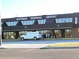 El Aeropuerto Regional Wittman fue atendido en varias ocasiones por aerolíneas como Wisconsin Central Airlines, North Central, Republic, Air Wisconsin, American Central, Midstate Airlines, Northwest Airlink, United Express, Midway Connection, Skyway y Great Lakes Airlines. El servicio fue subsidiado por el programa Essential Air Service hasta marzo de 2003, cuando se terminó debido a que la ley federal no permitía un subsidio de más de $200 USD por pasajero para las comunidades ubicadas a menos 210 millas del aeropuerto central grande o mediano más cercano.[5]