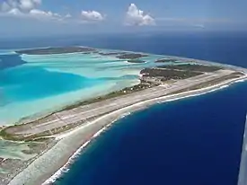 El aeropuerto fue inaugurado en 1943, durante la Segunda Guerra Mundial. El Servicio comercial llegó a estar disponible en 1958 después de que se reconstruyó la pista. Está construido sobre una isla ( la palabra polinesia usada es "motu" ) situada en una laguna . Un traslado en barco es necesario para llegar a la isla principal de Bora Bora.
