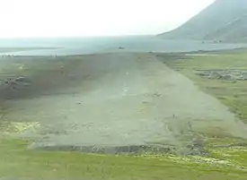 Ligeramente al sudeste del aeropuerto se encuentra una pista de aterrizaje abandonada en la época soviética.64°21′06″N 173°14′10″O
