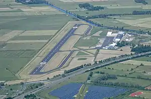 El aeropuerto reposa en una planicie a una elevación de 2 pies (1 m) sobre el nivel del mar. Cuenta con una única pista de aterrizaje designada como 07/25 con una superficie de asfalto de 1.300 x 30 m.[2]