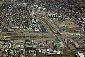 Originalmente, el aeropuerto estaba ubicado completamente dentro de los límites de la ciudad de Burbank, pero el extremo norte de la Pista 15/33 se ha extendido desde entonces a la ciudad de Los Ángeles.