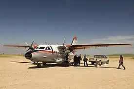 Consiste únicamente en una pista de tierra y una pequeña plataforma del mismo material. Se dedica principalmente a la aviación regional.[1]
