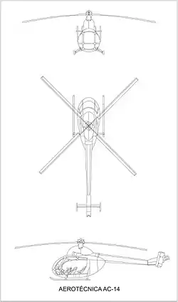 El Aerotécnica AC-14[1] fue un helicóptero ligero de cinco plazas español diseñado en los años 50 por el ingeniero francés Jean Cantinieau, basándose en un diseño ampliado del prototipo triplaza Aerotécnica AC-13,[2] que era similar al también prototipo francés Nord N.1750 Norelfe,[3] y que al igual que estos, contaba como principal novedad la sustitución del rotor de cola por un sistema deflector de los gases de la combustión del motor, similar al actual sistema NOTAR.[3] Realizó su primer vuelo el 16 de julio de 1957.[2]