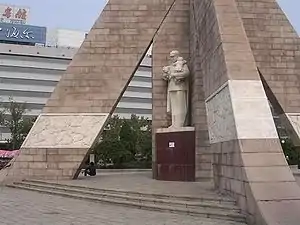 La pantalla luego corta a un monumento de piedra en Tangshan con los nombres de las 240,000 víctimas del terremoto.