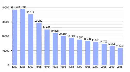 Según los datos del censo japonés, la población de Aga ha disminuido rápidamente en los últimos 60 años.[5]