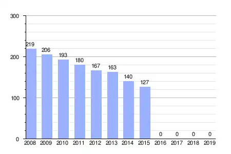 Deuda viva del ayuntamiento en miles de Euros según datos del Ministerio de Hacienda y Ad. Públicas.[21] |