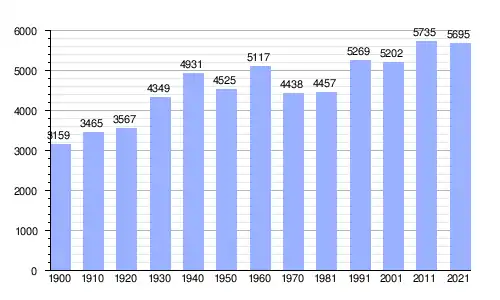 El municipio cuenta a 1 de enero de 2017 con 5526 habitantes y una densidad de población de 121,45 hab./km².[18]
