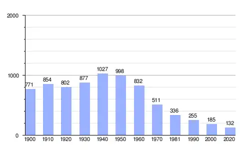 Gráfica de evolución demográfica de Agallas entre 1900 y 2020 |