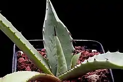 El agave cenizo (Agave durangensis)[1] es una planta de la familia de los agaves (Asparagaceae) de la región de Durango, México. Es de los magueyes medianos, sus rosetas miden casi un metro. Sus hojas son ásperas y con apariencia de estar cubiertas con cera, con mamilas y dientes aplanados.