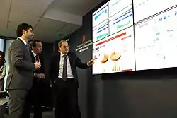 ![]() Quim Torra y Jordi Puigneró visitando la sala de control de la Agencia de Ciberseguridad | ||||