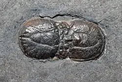 El céfalon no posee ni suturas faciales ni ojos. La glabela se encuentra dividida en dos partes por una sutura transglabelar (anteroglabela y posteroglabela), y posee apertura cefalotorácica.