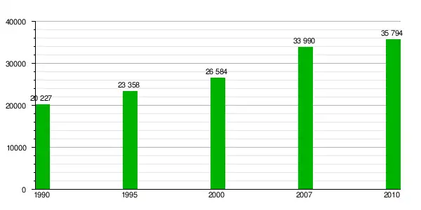 Gráfica de evolución demográfica de Agoncillo de Batangas (municipio) entre 1990 y 2010 |