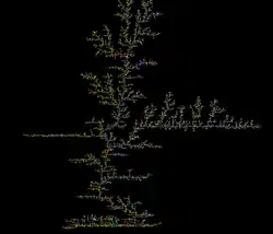 Un árbol browniano de una simulación computacional, Df ~ 1,50[2]