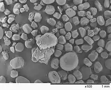 Polvo de fullerita microfotografía por (microscopio electrónico de barrido)