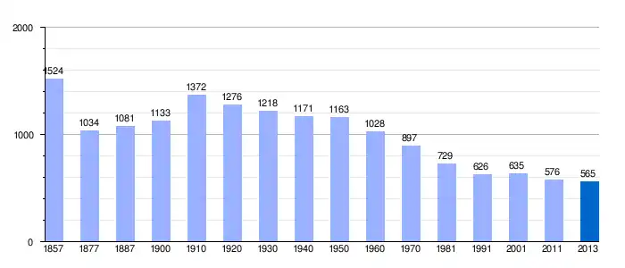 Población de derecho (1857-1991) o población residente (2001) según los censos de población del INE. Población según el padrón municipal de 2013 del INE. |