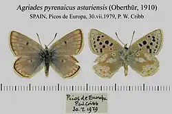 Agriades pyrenaicus, a la que se conoce como gavarnie azul, es una mariposa paleártica de la familia Lycaenidae.[1] Se encuentra en las montañas de Asturias, norte-España occidental, los Pirineos, la península balcánica del sur, Turquía, el Cáucaso y Armenia.[2]Su hábitat es de prados alpinos o pedregosos, se encuentra en las altitudes que varían de 1500 a 2200 metros.[3]