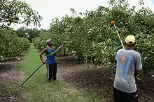 El país es uno de los grandes países frutícolas del mundo, siendo el primer productor del hemisferio sur en frutas de pepita, de carozo y cítricos. Actualmente, exporta a todo el mundo más de 20 tipos de frutas y sus subproductos. El mayor crecimiento exportador se dio en los últimos 20 años: se cuadruplicó el volumen y se sextuplicó el valor exportado.[84] La Mesopotamia es también productora de cítricos, y la región de Cuyo, donde a su vez se destaca una considerable producción agroindustrial del olivo y la uva, es el primer productor de vinos de América Latina y el quinto productor del mundo, con 16 000 000 hL (dieciséis millones de hectolitros) por año.[85] Existen los oasis de las provincias de Mendoza y San Juan. Otros cultivos importantes son los melocotones y cítricos. Con una superficie de alrededor de 6000 km² (seis mil kilómetros cuadrados), la producción de fruta es de alrededor de 18 000 000 t (dieciocho millones de toneladas) anuales. En los últimos diez años, el país alcanzó un récord de producción y exportaciones en legumbres, peras, manzanas, algodón, tabaco, cítricos, miel, ajo, cebolla y uva de mesa. En el período 2003-2011, las ventas al exterior de las economías regionales aumentaron 212 %.[86] Las manzanas y las peras son las cosechas de frutas de carozo más importantes, producidos principalmente en los valles fluviales de Río Negro y Neuquén. En 2016 la producción de peras y manzanas fue la peor de los últimos 10 años y un 15,5 % menor al promedio de la última década. En materia de exportaciones, se comerciaron un 9,6 % menos de frutas en 2016. Alguna de las mermas más significativas de las economías regionales son las ventas de ciruelas de San Juan (−96,4 %), duraznos de Neuquén (−73,2 %), peras de Mendoza (−46,7 %) y manzanas de Río Negro (−18,2 %).