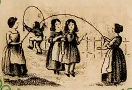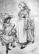 ![]() Representación de un pasaje de la zarzuela con dos aguadoras increpándose, por Ángel Lizcano. | ||