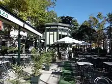Se desarrolla en los jardines de Recoletos o paseo de Recoletos. Como telón de fondo se ve la entrada a este paseo que los asistentes al estreno identificaron inmediatamente. El decorado lo forma el aguaducho de Pepa, sillas y veladores. En segundo término hay un banco de hierro que pertenece también al paseo y cerca del banco, un farol. El comienzo del cuadro lo protagonizan las amas, las niñeras y los niños. Estos juegan al corro cantando temas populares y canciones infantiles: