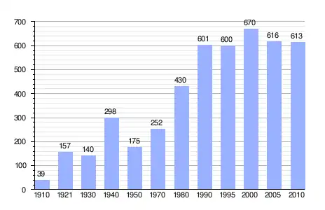 Población de los censos y conteos del Instituto Nacional de Estadística y Geografía (INEGI) de 1910 a 2010.[6] |