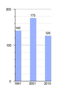 Gráfica de evolución demográfica de Aguada de Guerra entre 1991 y 2010 |