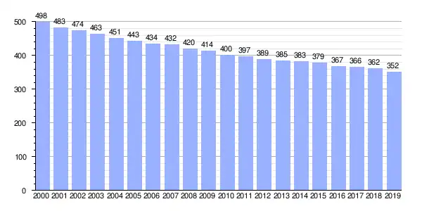 Gráfica de evolución demográfica de Aguas Santas entre 2000 y 2019 |