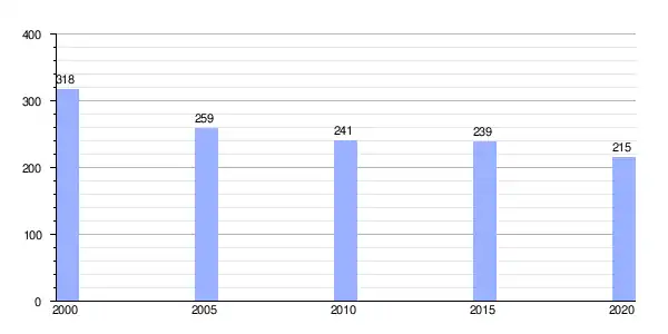 Gráfica de evolución demográfica de Aguas Santas entre 2000 y 2020 |