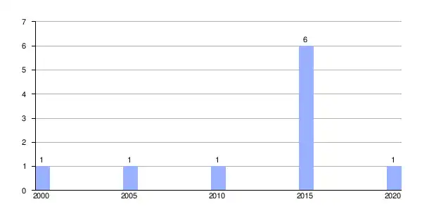 Gráfica de evolución demográfica de Aguela entre 2000 y 2020 |