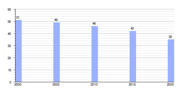 Gráfica de evolución demográfica de Aguiar entre 2000 y 2020 |