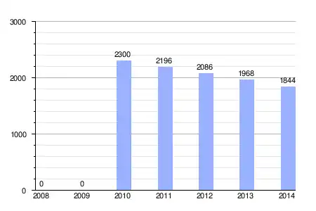 Gráfica de evolución de la deuda viva del ayuntamiento entre 2008 y 2014 |