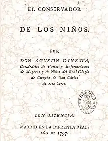 - Ginesta, Agustín (1797). El conservador de los niños. Madrid: Imprenta Real. p. 3. Consultado el 14 de enero de 2020.