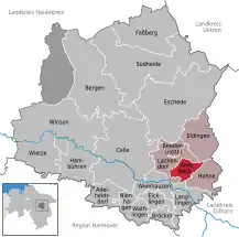 Se encuentra ubicado a poca distancia al noroeste de Brunswick y Wolfsburgo, al oeste de la frontera con el estado de Sajonia-Anhalt.