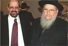 ![]() Ahron Daum junto con el Gran Rabino de Amberes, el Rabino M. D. Lieberman | ||