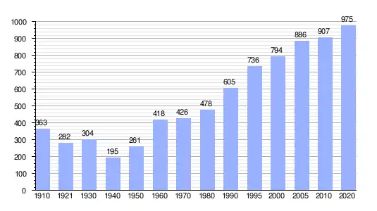 Población de los censos y conteos del Instituto Nacional de Estadística y Geografía (INEGI) de 1910 a 2020.[8] |
