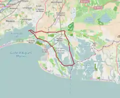 - Al este, la carretera secundaria D 58 la conecta con la ciudad de Saintes-Maries-de-la-Mer y al municipio de Arlés. Este camino se mueve por arrozales y los diferentes estanques que poblan la Camargue.