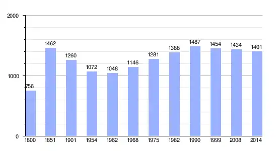 Los datos demográficos contemplados en este gráfico de la comuna de Aillant-sur-Tholon[4] se han cogido de 1800 a 1999 de la página francesa EHESS/Cassini, y los demás datos de la página del INSEE.[5]