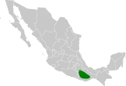 Su distribución se limita a las tierras altas del centro del estado de Oaxaca, en el sur de México. Vive en terrenos escarpados áridos y semiáridos con vegetación arbustiva. Es quizás la especie con distribución más restringida de todo el género Aimophila.