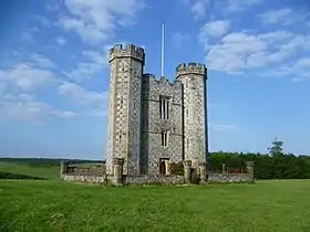 Exterior con patrón de ajedrez de la torre Hiorn.