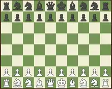 El conjunto habitual de trebejos está extendido con dos peones y dos januses por jugador. Cada janus está colocado entre una torre y un caballo. La posición relativa del rey y la reina es invertido comparado a ajedrez. Después de que enroque, la posición en que el rey puede terminar es la columna b- o i- y las posiciones de torre en c- o h-, según qué lado de enroque está hecho.