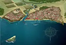 Recreación ideal de la ciudad de Al-Yazira al-Jadra en el siglo XIV.
