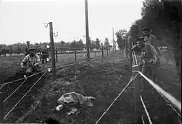 - Soldados alemanes junto al cadáver de una persona electrocutada.