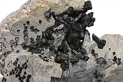 Hábito cristalino | Cristales fibrosos paralelos o en agregados radiales en bolas | |
