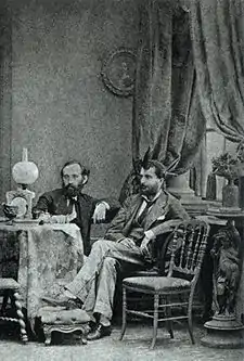 ![]() El fotógrafo Henschel (a la izquierda) y Constantino Barza en 1870. | ||