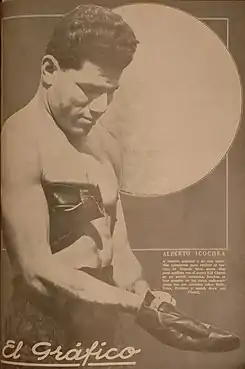 Alberto Icochea, pugilista natural del Callao, empezó su carrera en 1922. En 1923 ganó el título peruano de peso mediano tras vencer por nocaut al arequipeño Rosendo Huerta en el ring del Ciclista Lima. En 1924 hizo una gira a Estados Unidos donde logró algunas victorias, entre ellas una por nocaut a Ralph Thomas quien falleció tras la pelea.[1]