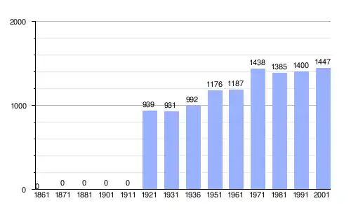 Gráfica de evolución demográfica de Albiano entre 1861 y 2001 |