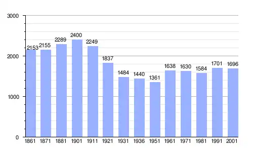 Gráfica de evolución demográfica de Albiano d'Ivrea entre 1861 y 2001 |